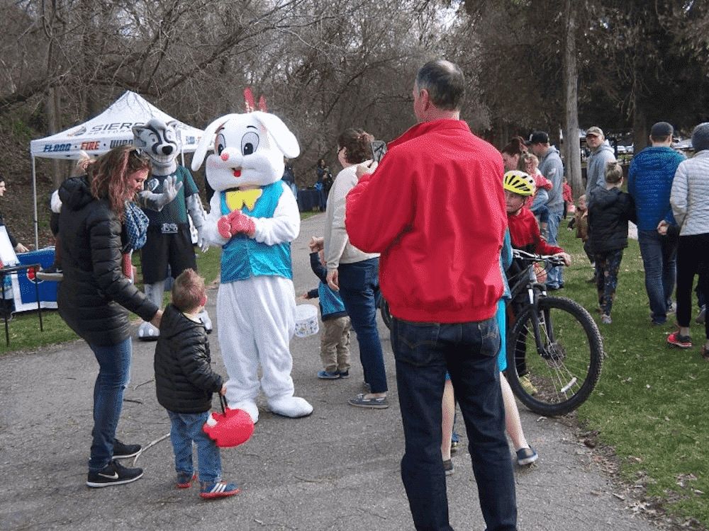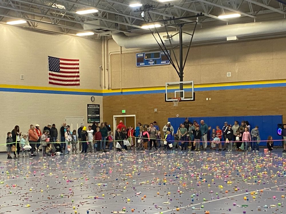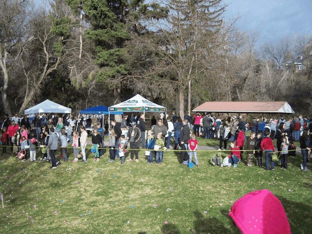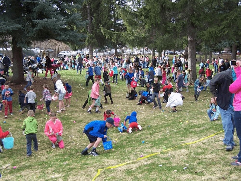The Smithfield Chamber of commerce hosts an Easter Egg hunt at the Smithfield recreation center the Saturday before Easter each year. There are Three age groups so everyone goes away happy. The hunt starts at 9:00 am so be there early.